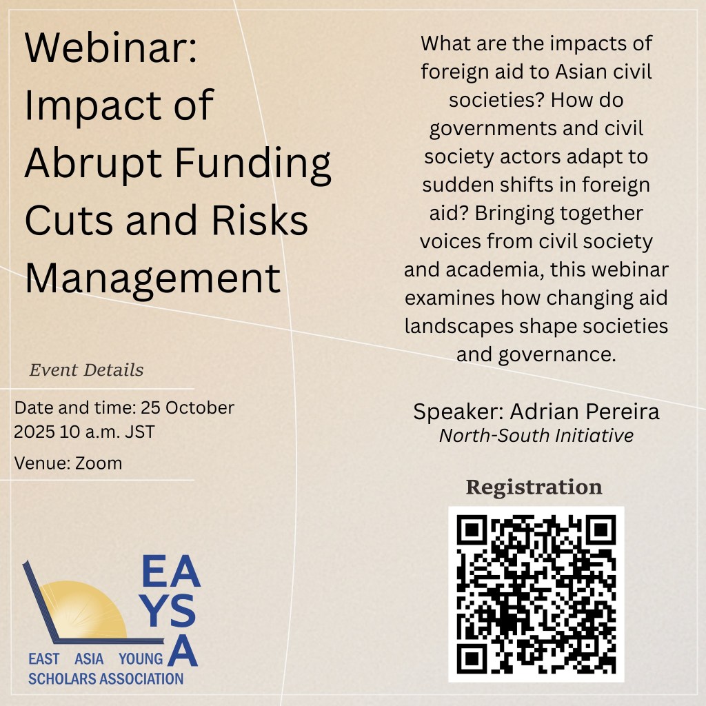 The Foreign Aid and Civil Society Series invites diverse perspectives to explore how foreign aid shapes Asian civil societies. It examines the challenges and innovations that arise as state and local actors navigate sudden shifts in aid landscapes and the evolving dynamics of power, partnership, and resilience.